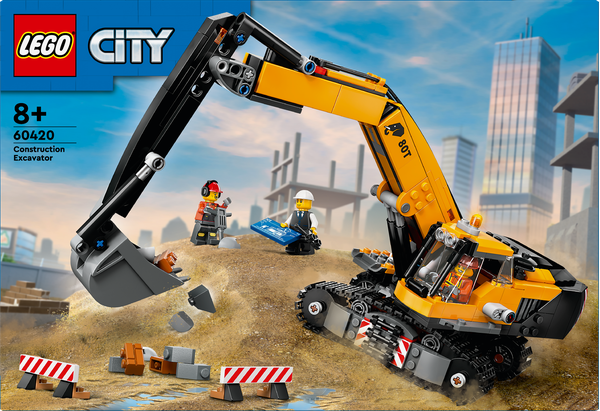 - Zawartość pudełka — ten zestaw LEGO® City zawiera zabawkową koparkę, dwie barierki i trzy minifigurki pracowników budowlanych LEGO, co zachęca do odgrywania ról