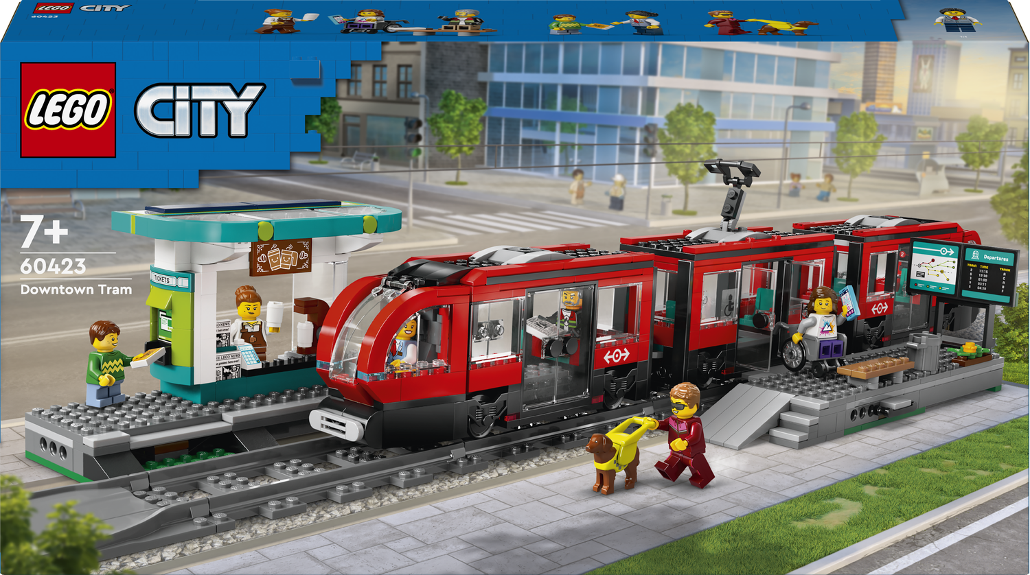 Zachwyć siedmioletnich i starszych fanów zabawkowych pociągów i tramwajów zestawem LEGO® City Tramwaj miejski ze stacją (60423). Ten ekscytujący tramwaj ma dwie kabiny motorniczego, kolorowe wnętrze z siedzeniami i podwójne drzwi. Na stacji znajduje się kawiarnia i peron z płytami pomostowymi. W zestawie jest także sześć minifigurek do odgrywania ról i opowiadania historii, w tym postać z psem asystującym i postać na wózku inwalidzkim.