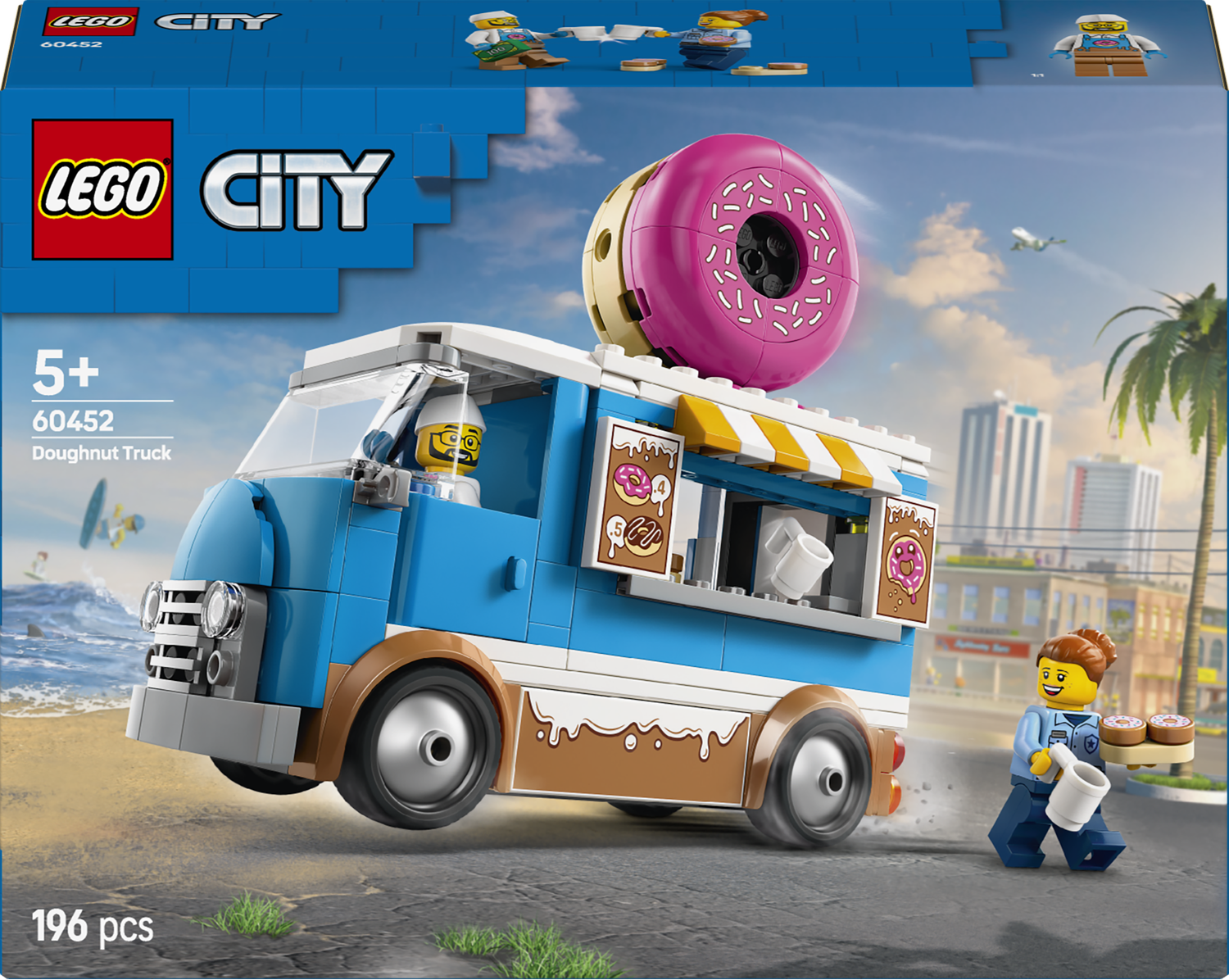 Pojazdy LEGO City to zabawki konstrukcyjne poruszające się w powietrzu, po lądzie i po wodzie, które umożliwiają pomysłową zabawę. Pączkarnia LEGO to kreatywny prezent dla dziewczynki i chłopca, którzy lubią zabawkowe jedzenie, odgrywanie ról i budowanie. Dzieci mogą dodać tę mobilną pączkarnię do innych zestawów klocków LEGO City (sprzedawanych osobno) i przeżyć kolejne przygody.