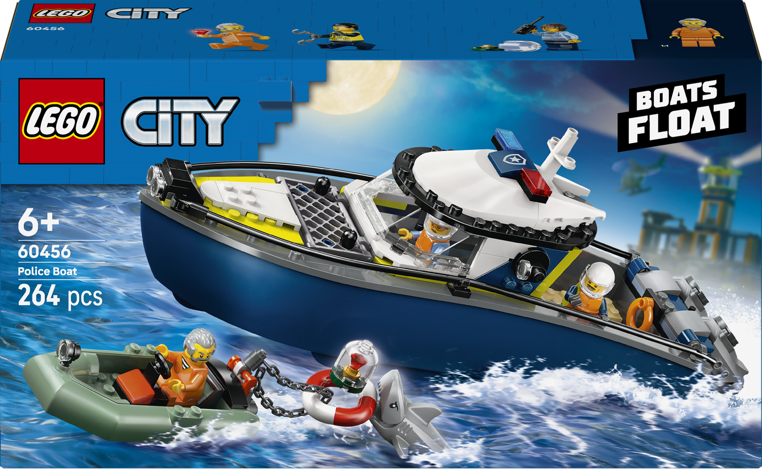 Zabawka dla 6-latka obejmuje wiele realistycznych funkcji, które ułatwiają odgrywanie ról i wymyślanie własnych historii. Obie łodzie LEGO unoszą się na wodzie, co umożliwia zabawę w wannie lub basenie. Pościg z udziałem policji, złodziejaszka i rekina LEGO z pewnością pobudzi dziecięcą wyobraźnię. Ten zestaw LEGO dla 6-latka można połączyć z innymi zabawkami LEGO City, aby stworzyć większy świat akcji i przygód.