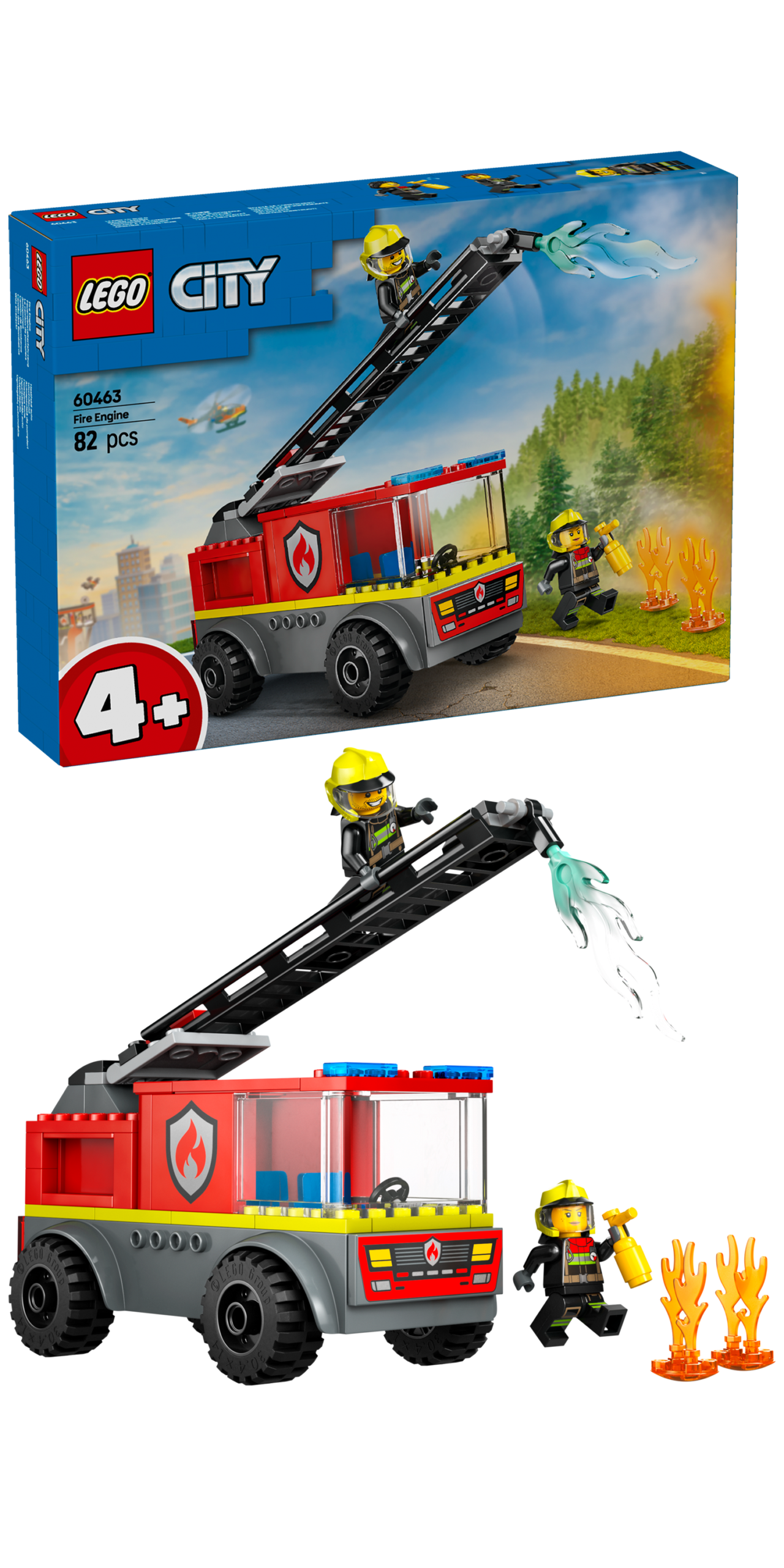 Dołącz do swojej pociechy i przeżyjcie ciekawe przygody podczas zabawy zestawem LEGO City Wóz Strażacki z drabiną (60463). To zabawka dla 4-latka i starszych dzieci, która spodoba się małym fanom pojazdów LEGO. Wóz strażacki ma kabinę kierowcy i podnoszoną drabinę z zabawkową gaśnicą. Ta zabawka do odgrywania ról zawiera również dwa migoczące płomienie LEGO, ręczną gaśnicę i dwie minifigurki strażaków do opowiadania historii.