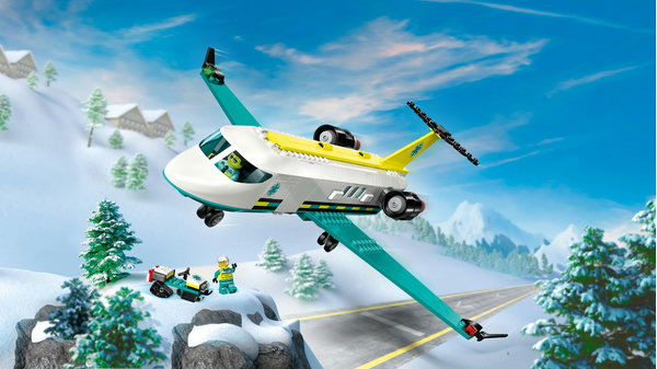 - Model samolotu pogotowia ratunkowego — w zestawie LEGO® City Samolot pogotowia ratunkowego na dzieci w wieku od sześciu lat czekają pełne akcji misje ratunkowe