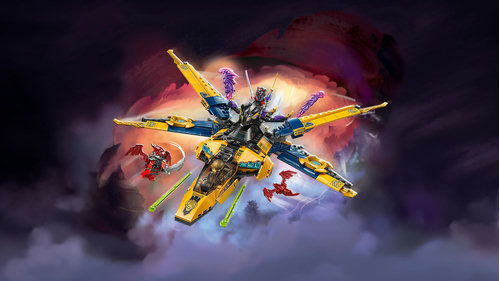 • Odrzutowiec dla dzieci — dzięki zestawowi Ras i burzowy superodrzutowiec Arina ośmiolatki i starsze dzieci mogą odgrywać podniebne sceny z trzeciego sezonu serialu NINJAGO® Powstanie Smoków