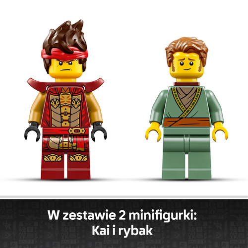 - Dwie minifigurki: Kai z magicznym mieczem i rybak w łódce