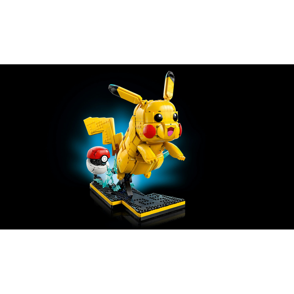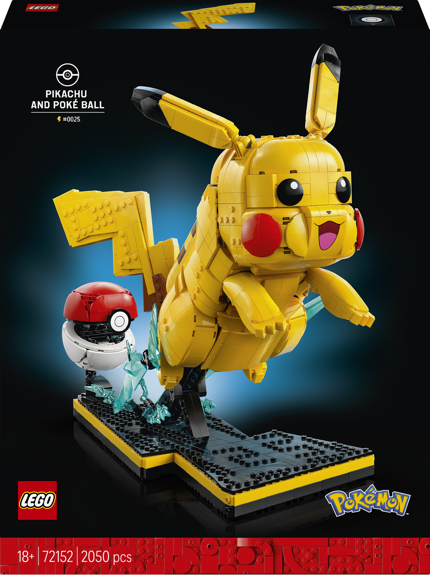Ten szczegółowy zestaw LEGO dla dorosłych, składający się z 2050 elementów to pomysł na prezent dla dorosłych miłośników Pokémonów, akcesoriów i gadżetów z gier wideo. Kolorową dekorację do pokoju gier — żółty model Pikachu z czarnymi końcówkami uszu, czerwonymi policzkami i ogonem można zbudować tak, aby przedstawiał wersję męską lub żeńską. Inne charakterystyczne detale kolekcjonerskiej figurki to iskry błyskawic symbolizujące zapasy energii elektrycznego Pokémona oraz cyfra „25” umieszczona na podstawie ekspozycyjnej, nawiązująca do numeru Pikachu w Pokédexie. Ruchomą figurkę Pikachu można ustawić w dynamicznej pozycji bojowej, gdy wyskakuje z otwartego pokéballa, którego można też zamknąć, gdy model Pikachu relaksuje się obok.