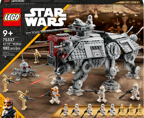 - Maszyna krocząca AT-TE (75337) — dzieci mogą odtwarzać Bitwę o Utapau dzięki szczegółowej maszynie kroczącej LEGO® Star Wars™ AT-TE z filmu „Gwiezdne Wojny: Zemsta Sithów”