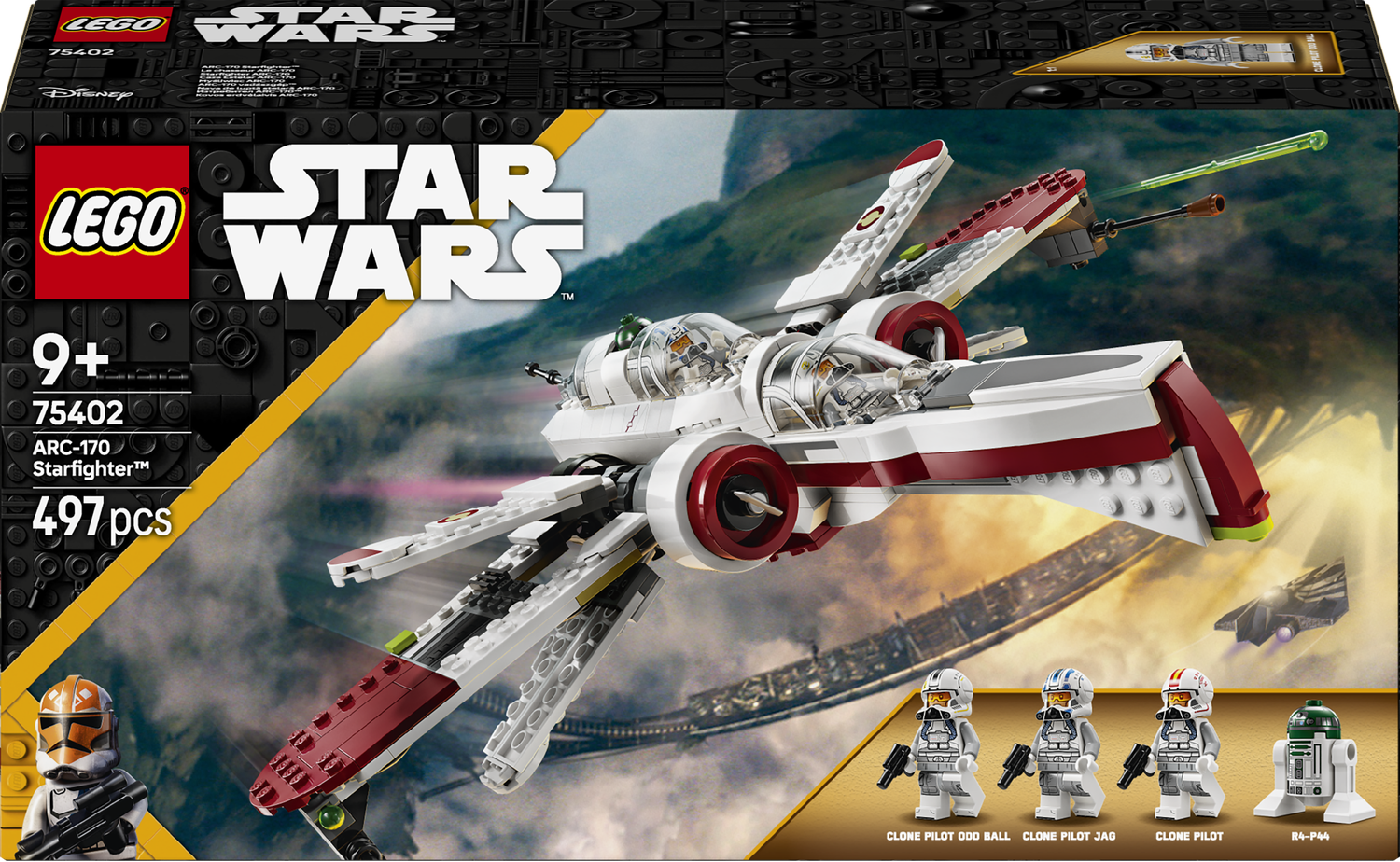 Zestaw ze statkiem kosmicznym zawiera cztery postacie LEGO Star Wars. Minifigurki 3 LEGO pilotów oddziału klonów (w tym Odd Balla i Jaga) można umieścić w kokpitach, a na pokładzie jest również miejsce na figurkę LEGO droida R4-P44. Poszerz kreatywne doświadczenia dzieci dzięki aplikacji LEGO Builder, w której można powiększać i obracać cyfrową wersję 3D myśliwca z Gwiezdnych Wojen.