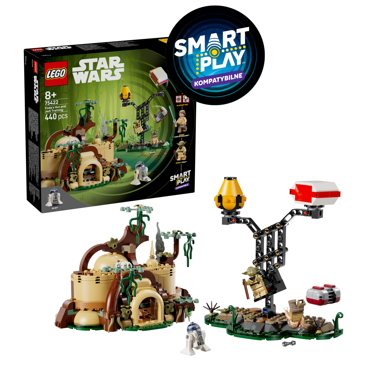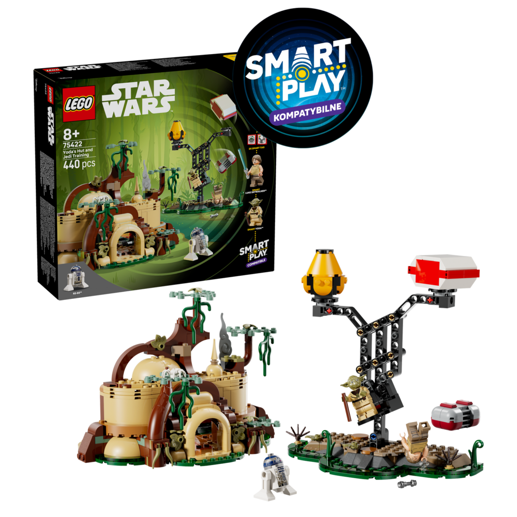 Ten zestaw kompatybilny z systemem LEGO SMART Play zawiera dwa SMART Tagi, minifigurki LEGO (SMART Yoda i SMART Luke Skywalker) oraz figurkę droida LEGO R2-D2, które pozwalają odgrywać sceny z filmu Gwiezdne Wojny. Dodaj SMART klocek z zestawu Wszystko w Jednym 75421, 75423 lub 75427 (sprzedawane oddzielnie), aby zapewnić dzieciom interaktywną zabawę z dynamicznymi dźwiękami i światłami, imitującymi „równoważenie Mocy”, gotowanie potraw, a nawet siorbanie.