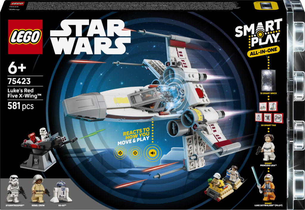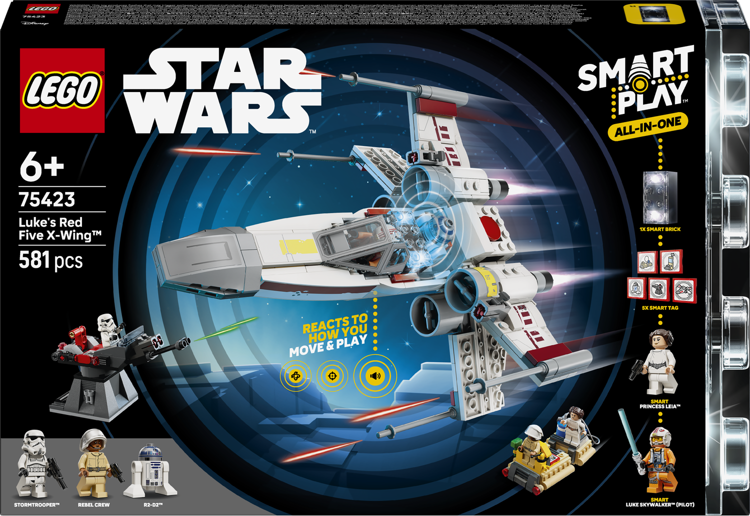 Odkryj galaktykę LEGO Star Wars dzięki interaktywnej zabawce konstrukcyjnej dla chłopców i dziewczynek w wieku od 6 lat, LEGO Star Wars SMART Play: X-Wing Czerwona Piątka Luke’a (75423). Ten zestaw interaktywny Wszystko w jednym, będący częścią serii zestawów obsługiwanych przez system LEGO SMART Play, zawiera wszystkie elementy SMART Play — SMART klocek i ładowarkę, dwie SMART minifigurki LEGO oraz pięć SMART Tagów, które umożliwiają responsywną zabawę, dynamiczne efekty dźwiękowe i świetlne oraz wiele innych funkcji.