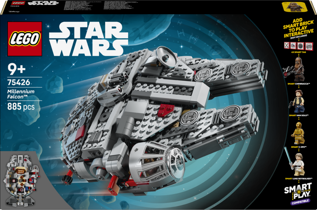 Zestaw kompatybilny LEGO Star Wars SMART Play: Sokół Millennium (75426) to interaktywna zabawka dla dzieci od 9 lat i dorosłych fanów Gwiezdnych Wojen, która pozwoli wcielić się w legendarne postacie z pokładu Sokoła Millennium. Model słynnego statku gwiezdnego ma dwa miotacze klocków i podnoszone oraz rozkładane górne sekcje, które ułatwiają dostęp do szczegółowego wnętrza. Dzieci mogą sobie wyobrazić jak grają w holoszachy, ćwiczą umiejętności posługiwania się mieczem świetlnym lub po prostu relaksują się w strefie wypoczynkowej.