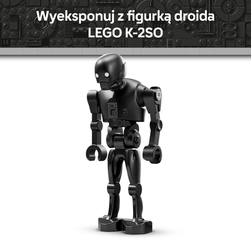 Zestaw ten to doskonały prezent dla fanów Gwiezdnych Wojen. Zawiera również tabliczkę z informacjami o K-2SO i standardową figurkę LEGO droida K-2SO, którą można dodać do kompozycji.