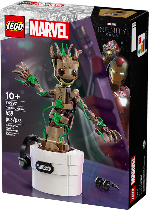 LEGO® Marvel Tańczący Groot (76297) to figurka z filmu Strażnicy Galaktyki z interaktywną funkcją tańca. To świetny prezent dla 10-latków i starszych dzieci, które są fanami Groota Marvela, superbohaterów i zabawek LEGO.
