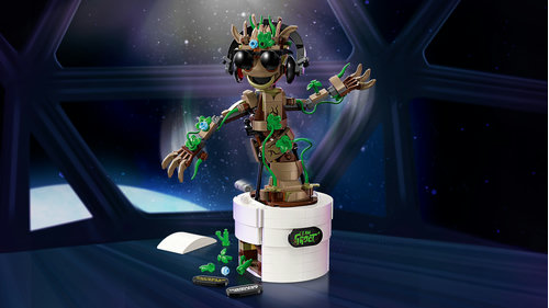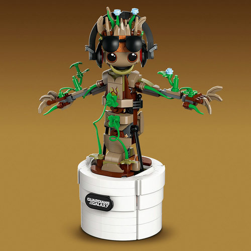 Ten zestaw konstrukcyjny obejmuje figurkę Groota z ruchomą głową i ramionami. Po przekręceniu uchwytu z tyłu doniczki Groot zaczyna tańczyć. Figurkę można spersonalizować, dodając liście, słuchawki i okulary przeciwsłoneczne. Ponadto dzieci mogą ozdobić doniczkę, przyczepiając z przodu jedną z trzech różnych tabliczek z napisem (w tym jedną związaną z serialem Ja jestem Groot). Wszystkie te akcesoria można przechowywać w schowku w doniczce. Budowanie urozmaica aplikacja LEGO Builder, w której można powiększać i obracać modele w 3D oraz śledzić postępy.