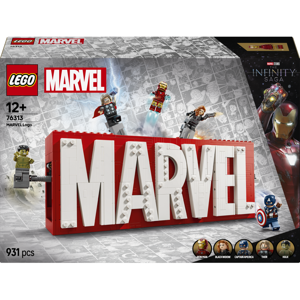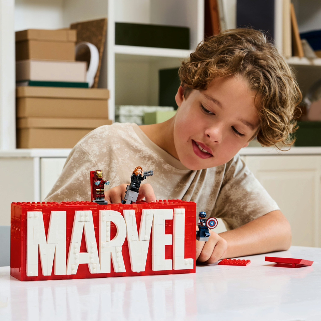 Zabawka dla chłopców i dziewczynek z logo MARVEL składa się z jaskrawych czerwonych i białych klocków. Dzieci naciskają trzy oddzielne przyciski na górze logo, aby minifigurki LEGO Hulka, Thora, Iron Mana, Czarnej Wdowy i Kapitana Ameryki mogły wyskoczyć z modelu. Wszystkie minifigurki z łatwością wracają do swojej pierwotnej pozycji. Dodatkową cyfrową zabawę zapewnia intuicyjna aplikacja LEGO Builder, w której można powiększać i obracać modele w 3D oraz śledzić swoje postępy.