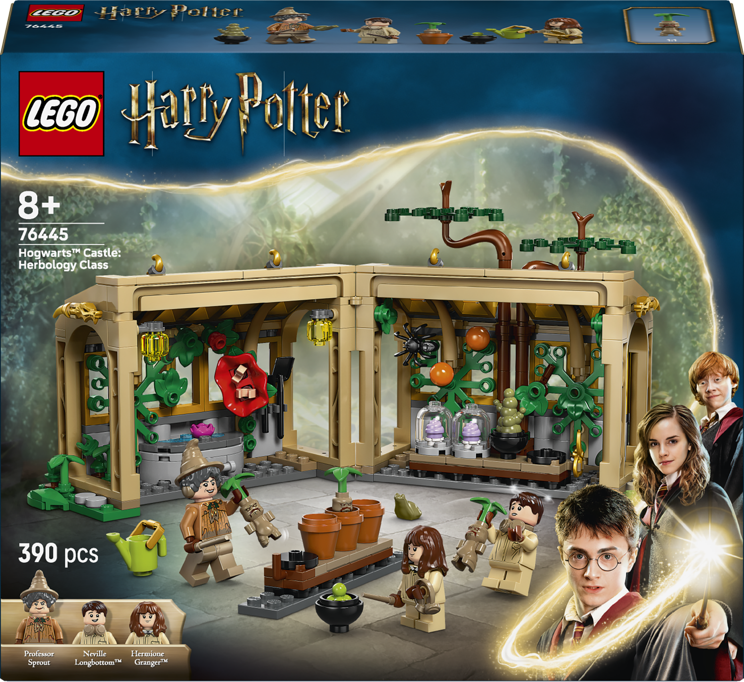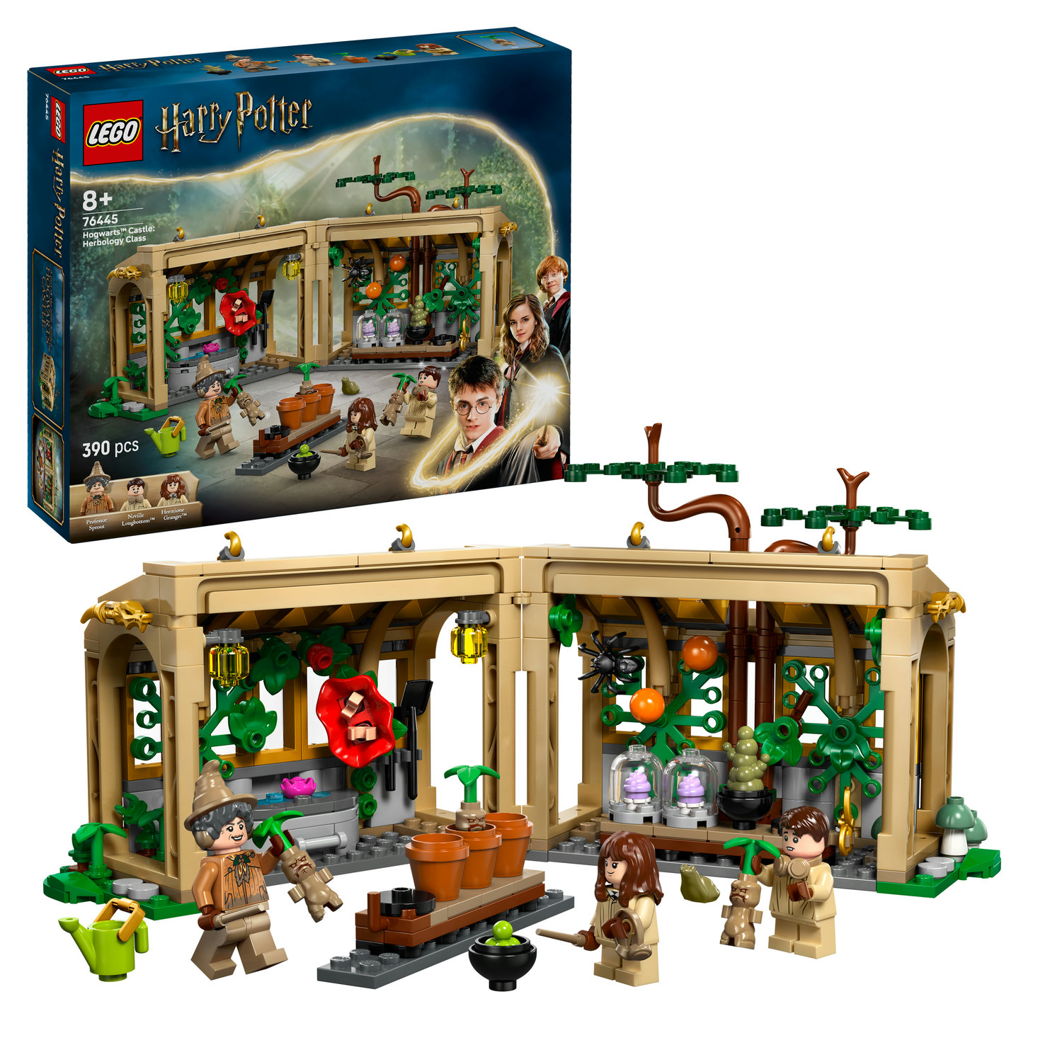 W komplecie znajdują się minifigurki LEGO Harry Potter: Neville Longbottom, Hermiona Granger i profesor Sprout, a także figurka ropuchy Teodory. Dzięki nim dzieci mogą odtworzyć lekcje z zielarstwa i wymyślać nowe historie w klasie LEGO Harry Potter.