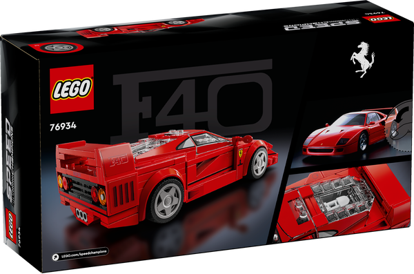 Dziewięciolatki i starsze dzieci mogą dodać do swojej kolekcji, budować, bawić się, a także ustawić na półce ten niesamowity Supersamochód Ferrari F40 LEGO® Speed Champions (76934). Zaprojektowany z okazji 40. rocznicy powstania kultowej włoskiej marki samochodów, F40 był ostatnim modelem zatwierdzonym osobiście przez założyciela Ferrari, Enzo Ferrariego, a ten fantastyczny pojazd do zbudowania zawiera mnóstwo detali inspirowanych prawdziwym modelem.