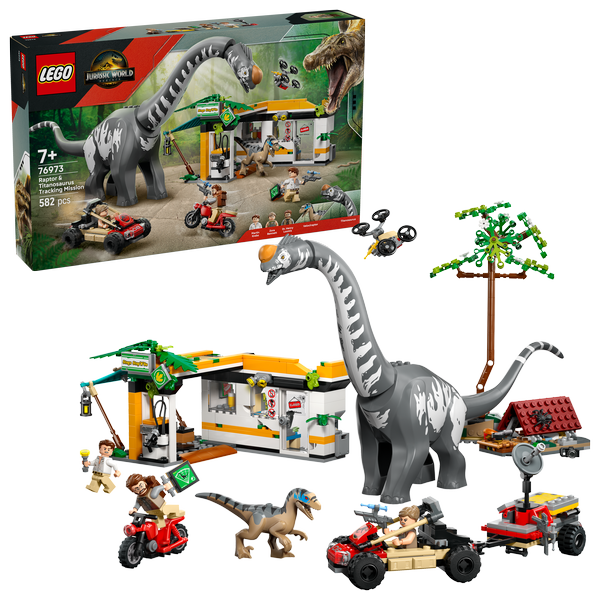 - Zestaw z dinozaurami — Na tropie tytanozaura i raptora to zestaw, który zachwyci siedmioletnich i starszych fanów filmu Jurassic World Rebirth, którzy uwielbiają ekscytujące przygody i dinozaury