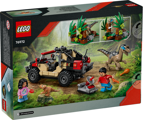 Zestaw LEGO® Jurassic World Ucieczka terenówką przed raptorem (76972) gwarantuje ekscytujące przygody dzieciom i fanom filmu Jurassic World Rebirth w wieku od sześciu lat. Po zbudowaniu zestawu dzieci mogą odgrywać ulubione sceny z filmu lub nowe przygody z minifigurkami Reubena i Isabelli Delgado, figurką małego dinozaura Dolores i figurką welociraptora z ruchomym pyskiem. Zestaw zawiera zabawkowy pojazd terenowy i urządzenie śledzące, krzak z funkcją zaskoczenia, za którym można ustawić welociraptora — i wiele więcej.