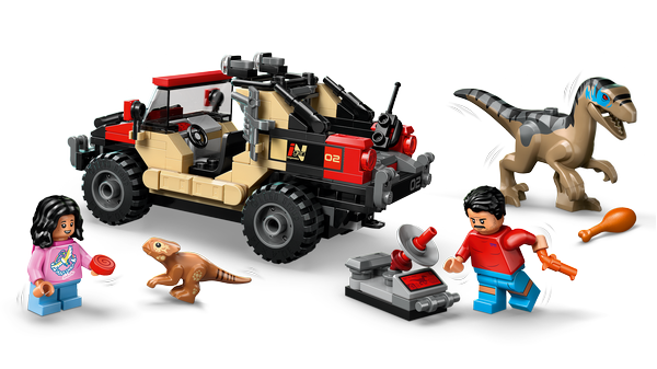 - Zestaw z welociraptorem — podaruj fanom dinozaurów w wieku od sześciu lat szczegółowy zestaw Ucieczka terenówką przed raptorem, stworzony z myślą o dziecięcej pasji do bohaterów, dinozaurów i przygód