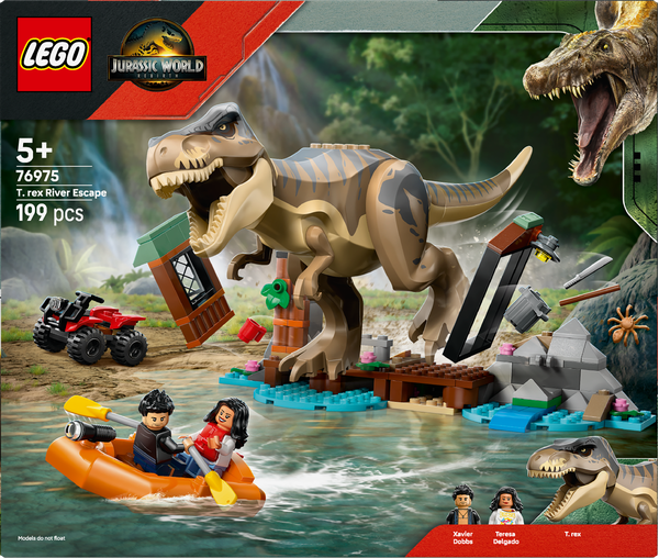 - Zestaw z tyranozaurem — podaruj fanom w wieku od pięciu lat ten szczegółowy zestaw Ucieczka rzeką przed tyranozaurem, który zapozna dzieci z uniwersum Jurassic World dzięki pełnemu akcji zestawowi konstrukcyjnemu