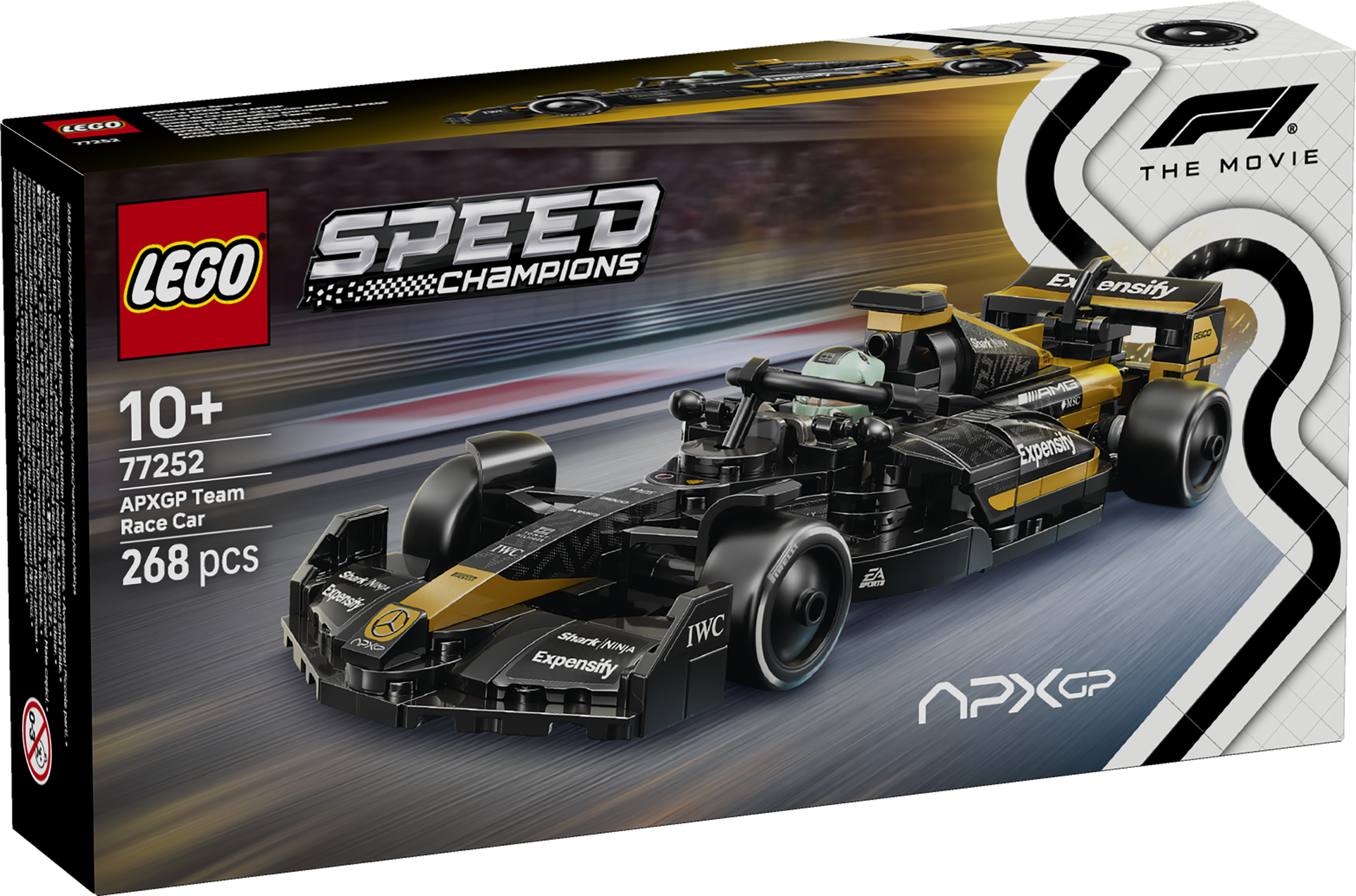 Chłopcy i dziewczynki w wieku od 10 lat będą zachwyceni budowaniem, zabawą i eksponowaniem bolidu LEGO® F1®: film — APXGP Team Race Car (77252) LEGO® Speed Champions. Ten model do zbudowania zawiera wiele detali bolidu z filmu z 2025 roku.