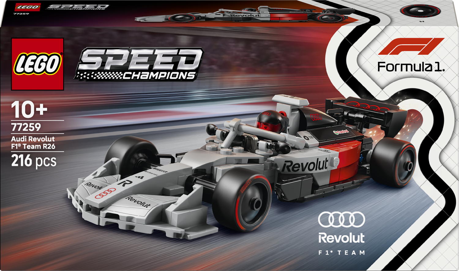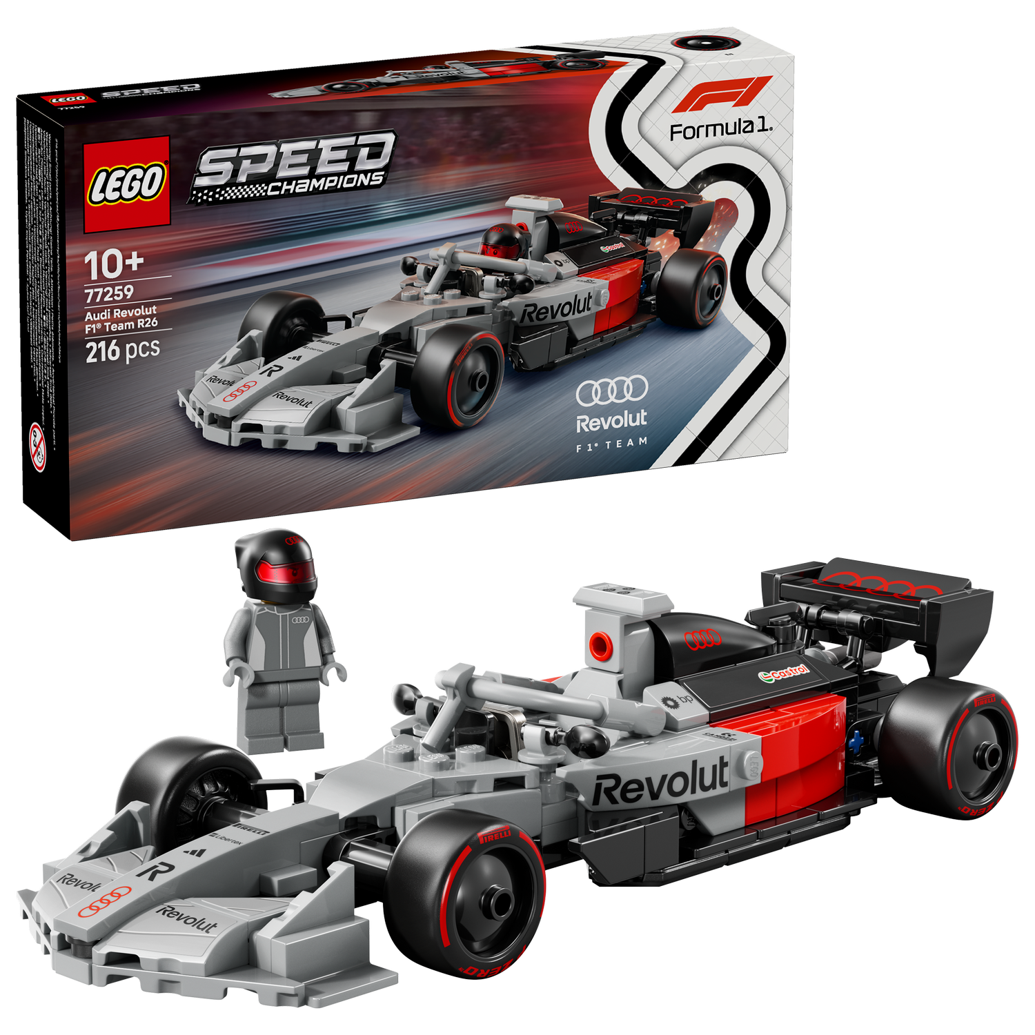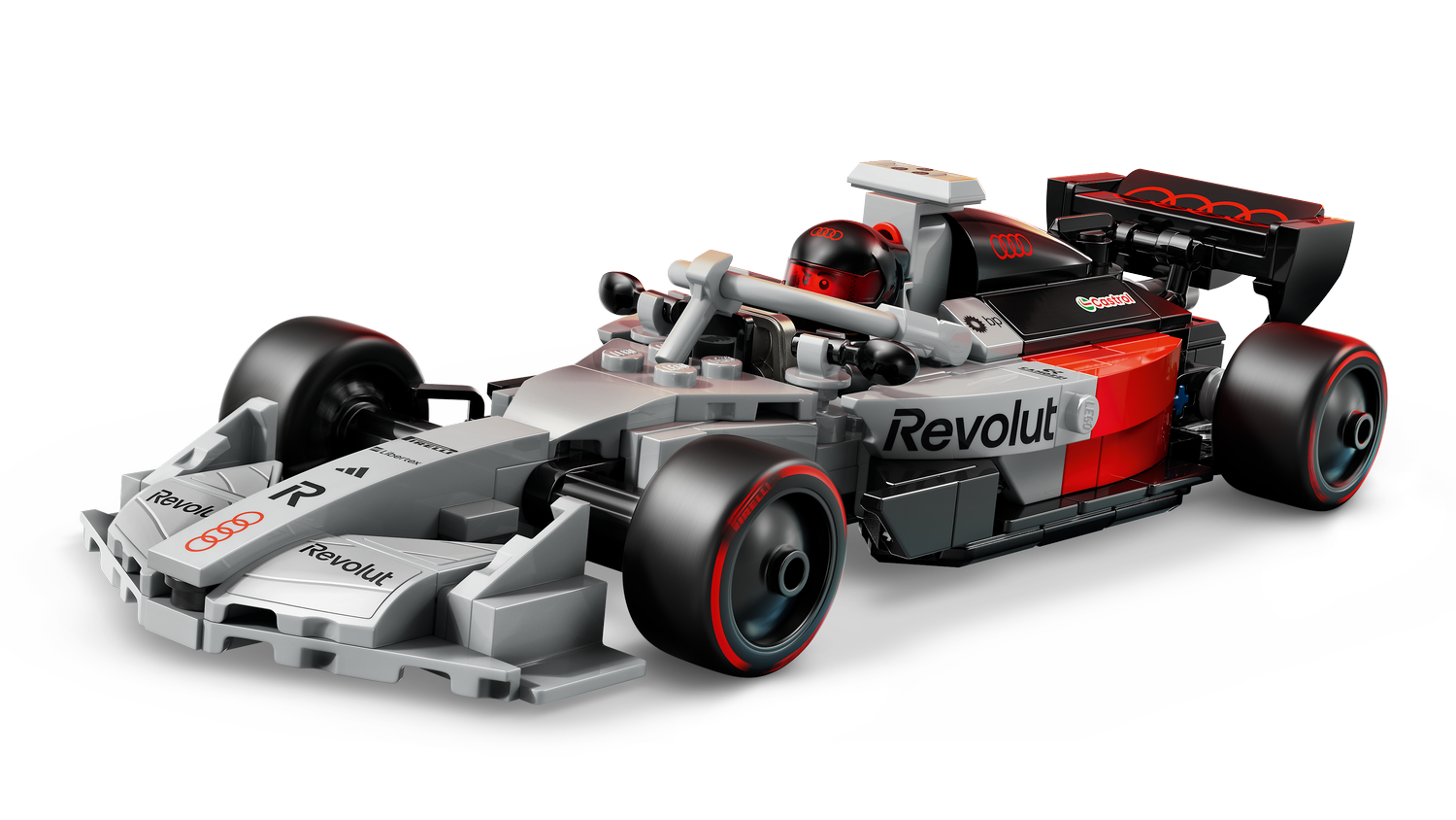 Bolid Audi Revolut F1® Team R26 ma kokpit, tylne skrzydło, autentyczne logotypy sponsorów, przednie zawieszenie kół oraz opony z nadrukiem „Pirelli”. Zabawkowy pojazd jest również wyposażony w minifigurkę w stroju Audi Revolut F1® Team oraz kasku. Można ją umieścić w kokpicie i rozgrywać wyścigi.
